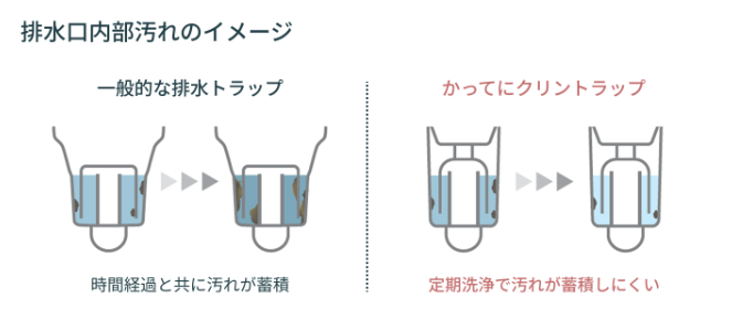 汚れがたまりやすくお手入れしにくい排水トラップ部分のお悩みを解消する新アイテムが開発され標準装備となりました!